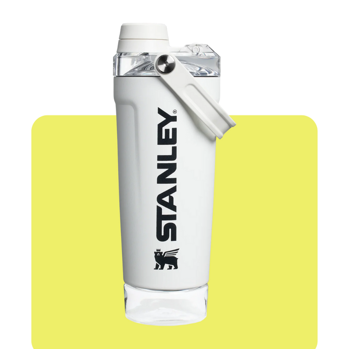 El interior está estampado con líneas de medición e incluye un mezclador extraíble. El recipiente de almacenamiento en la base y el asa suave de fácil agarre son ideales para llevar. Y con su tapa de Tritan a prueba de fugas, está lista para acompañarte a donde vayas.