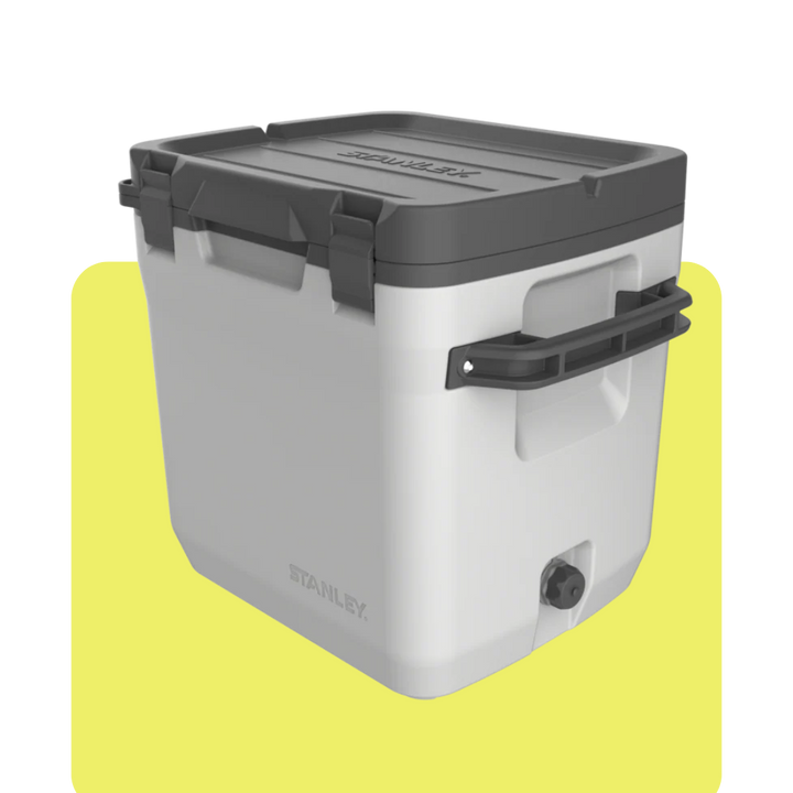 El Cooler Stanley Adventure Cold For Days. Tiene un doble aislamiento de espuma, similar al de un refrigerador, y es completamente a prueba de fugas. Su diseño duradero junto con su altura adicional, está hecho para acomodar botellas de 2 litros y botellas largas, Ciérralo y usa la tapa como mesa, banquito o asiento.
